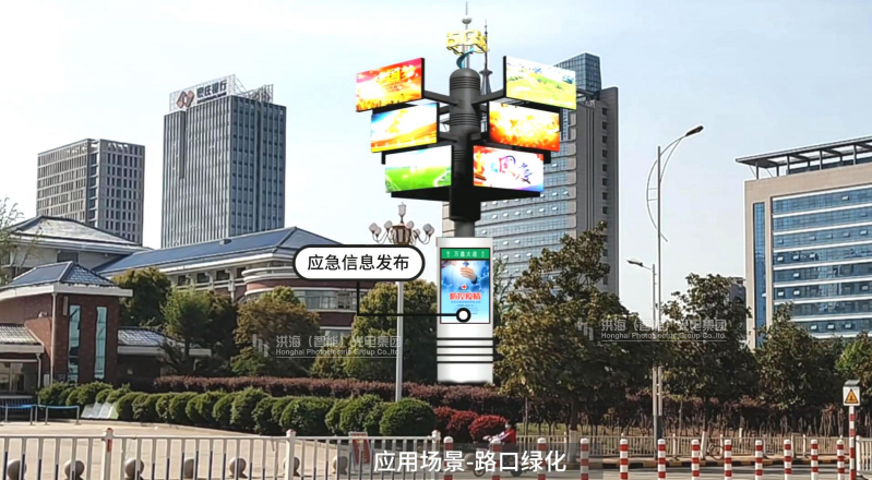 在智慧城市建設(shè)中,洪海光電集團(tuán)研發(fā)團(tuán)隊(duì)將原有的單一燈桿照明功能向“多桿合一”轉(zhuǎn)變,并加入各種5G廣告設(shè)計(jì)元素,不僅能美化道路環(huán)境,還能降本增效,并增加廣告投放曝光量及質(zhì)量,同時(shí)也能提高市政管理效率。